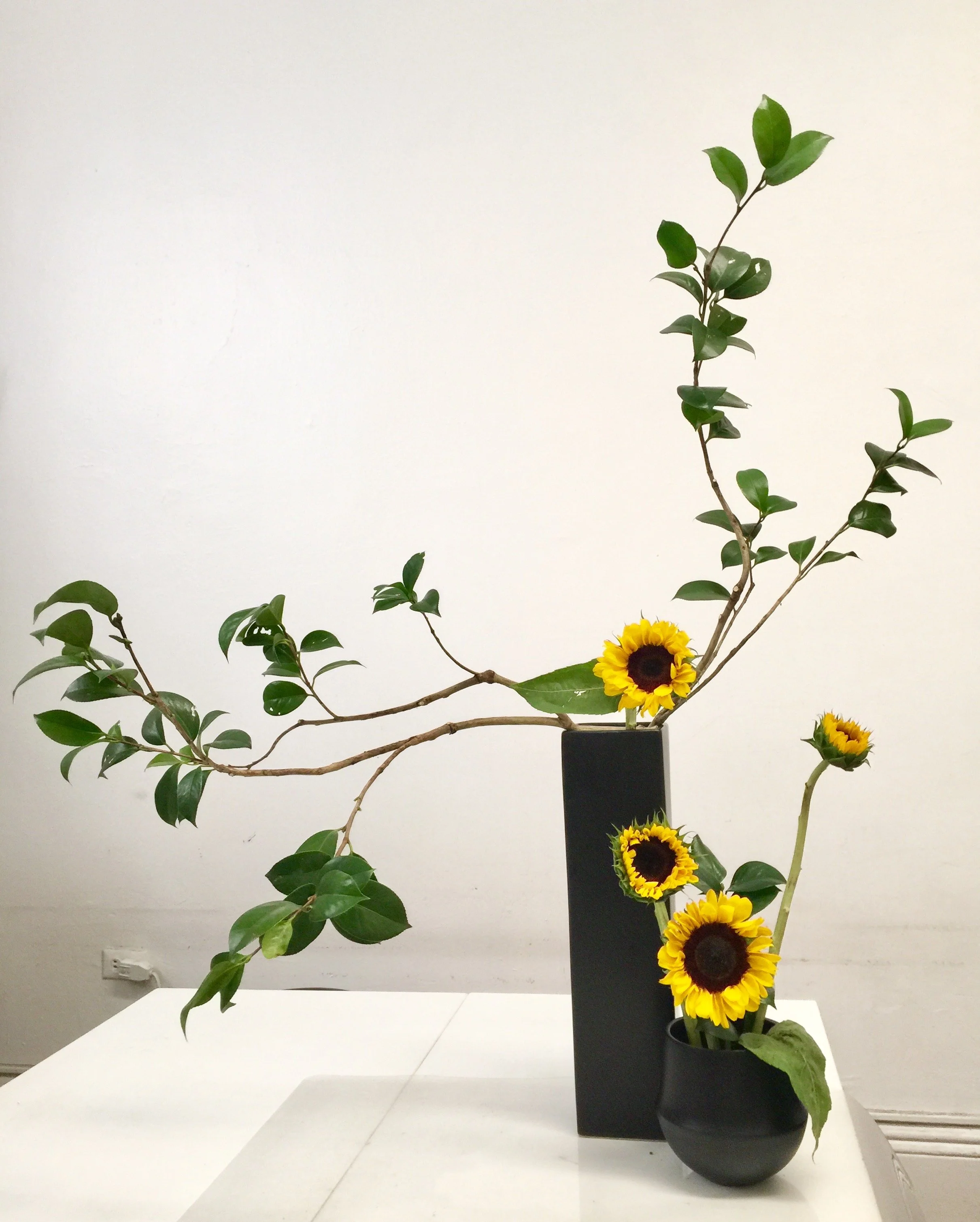 Using empty space inside a vase, properly trimming stems, using a pin frog, bending, and pruning branches (Tameru) are all technical aspects of Ikebana.
